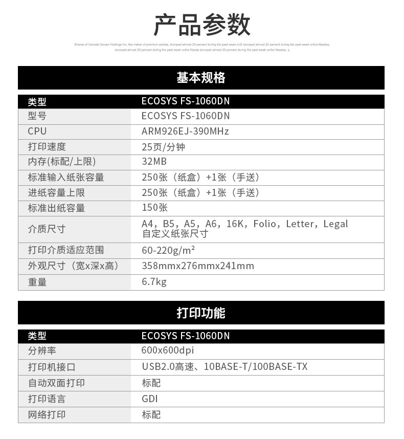 • 產(chǎn)品品牌:京瓷(KYOCERA)FS-1060DN激光打印機(jī)