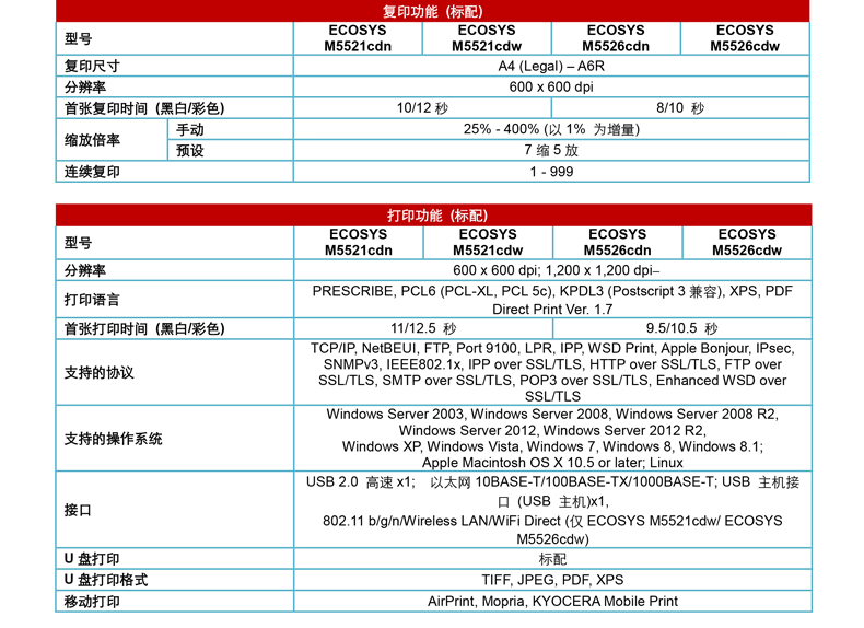• 產(chǎn)品名稱:京瓷(KYOCERA)M5526cdw多功能一體機(jī)