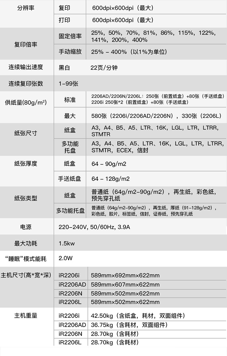 • 產(chǎn)品品牌:佳能(CANON)iR2206N A3黑白激光數(shù)碼復(fù)合機