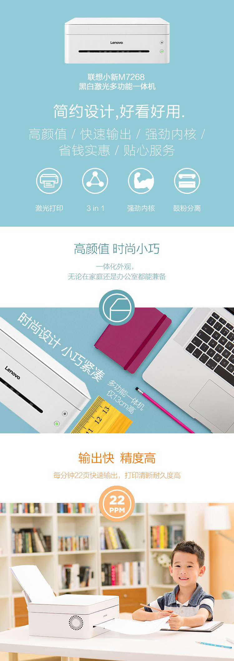 • 產(chǎn)品品牌:聯(lián)想(Lenovo) 小新M7268W多功能一體機(jī)