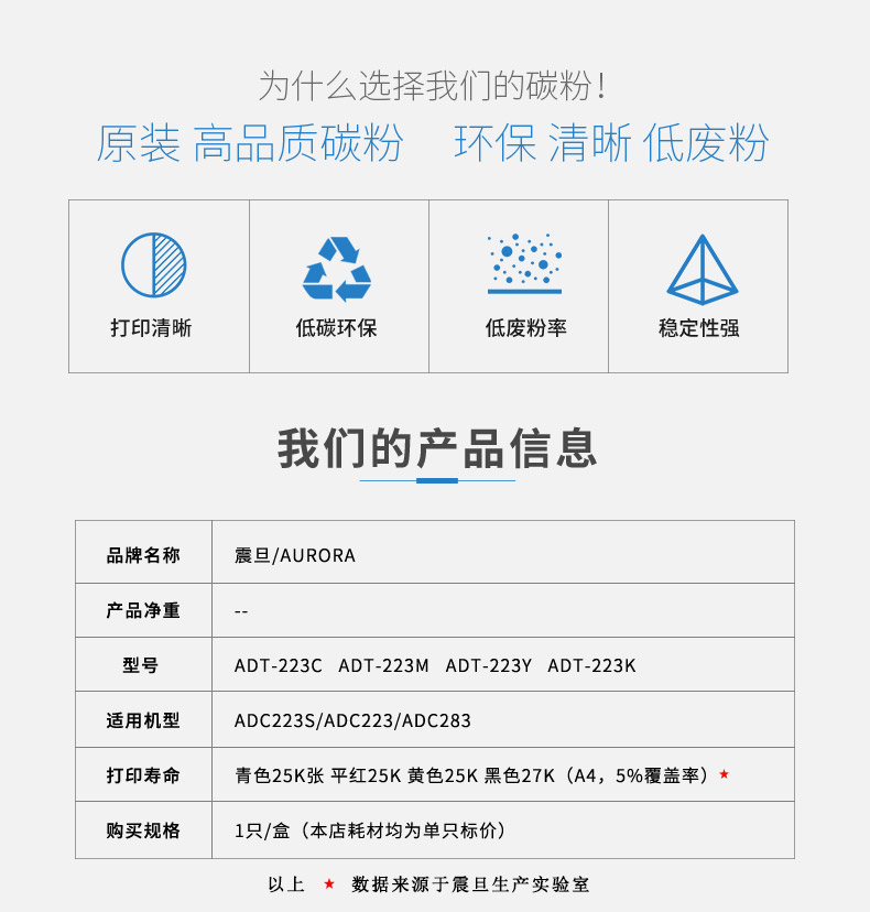 • 產(chǎn)品品牌:震旦ADT-223 CMYK復(fù)印機(jī)彩色耗材粉盒碳粉ADC223 ADC223S ADC283 低容量