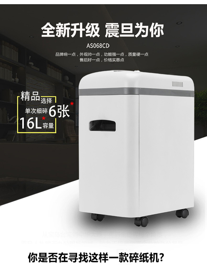 • 產(chǎn)品名稱(chēng):震旦 AS068CD多功能碎紙機(jī)辦公單次6張5級(jí)保密低音碎CD
