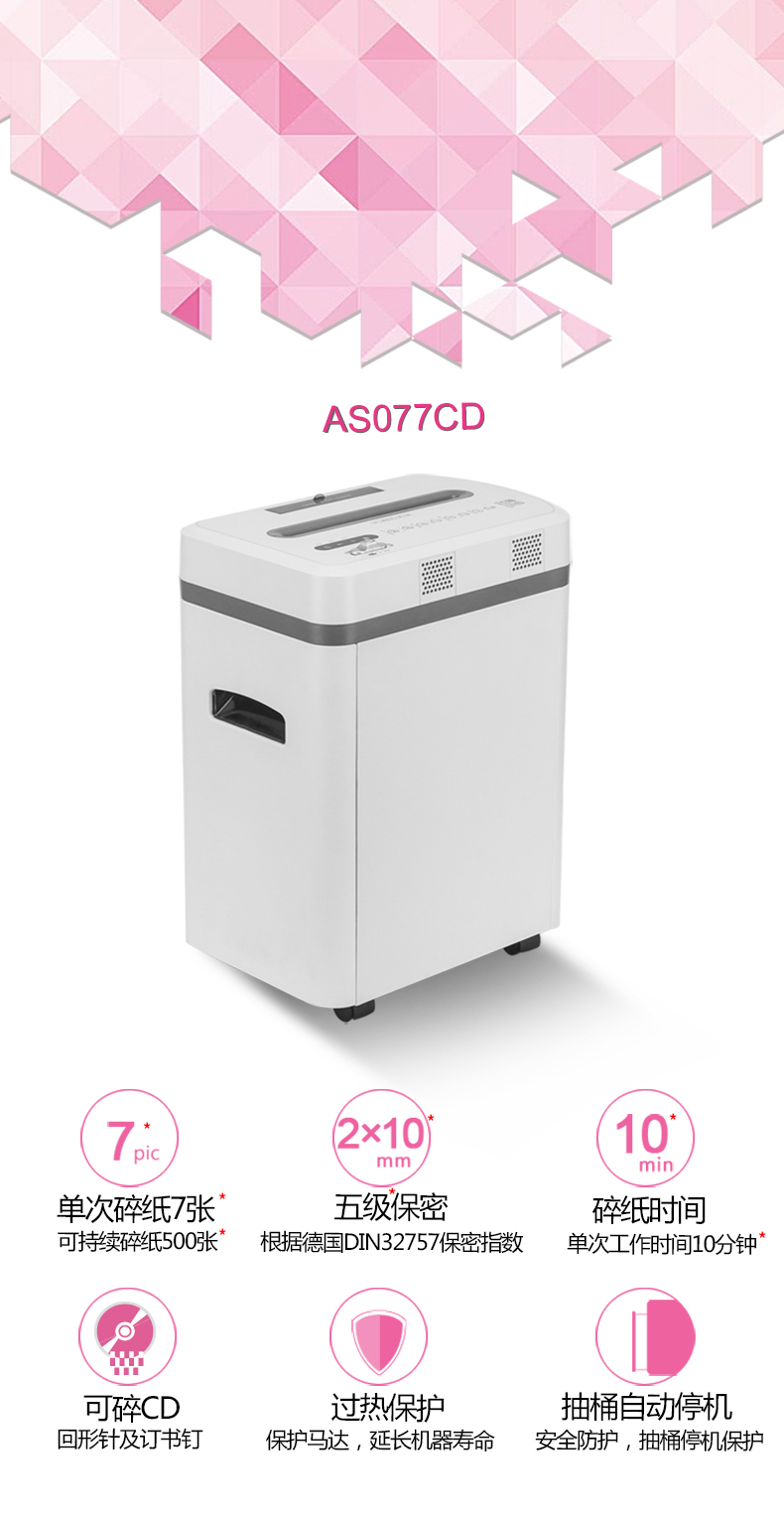 • 產(chǎn)品名稱:震旦 AS077CD多功能碎紙機(jī)辦公電動(dòng)單次碎紙7張碎卡5級(jí)保密靜音