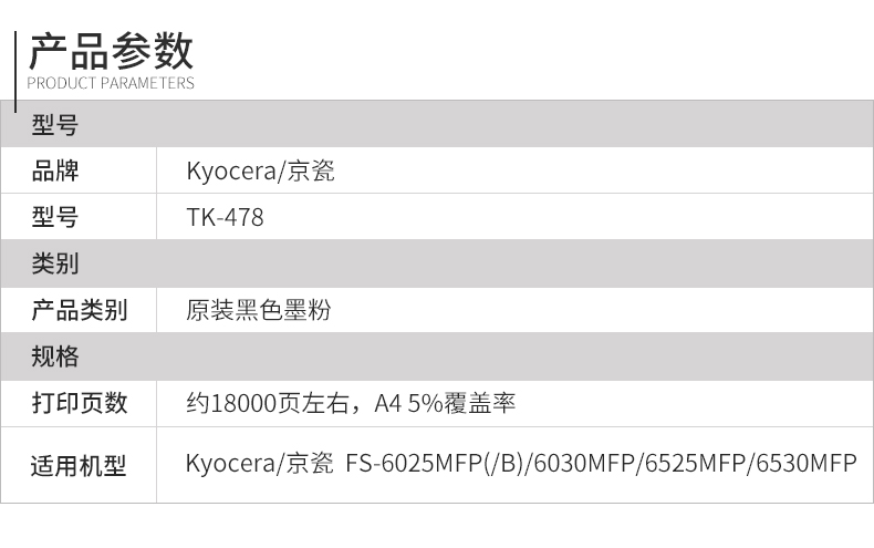 • 產(chǎn)品品牌:原裝正品京瓷TK-478粉盒 FS 6025 6030 6525 6530MFP碳粉 墨粉