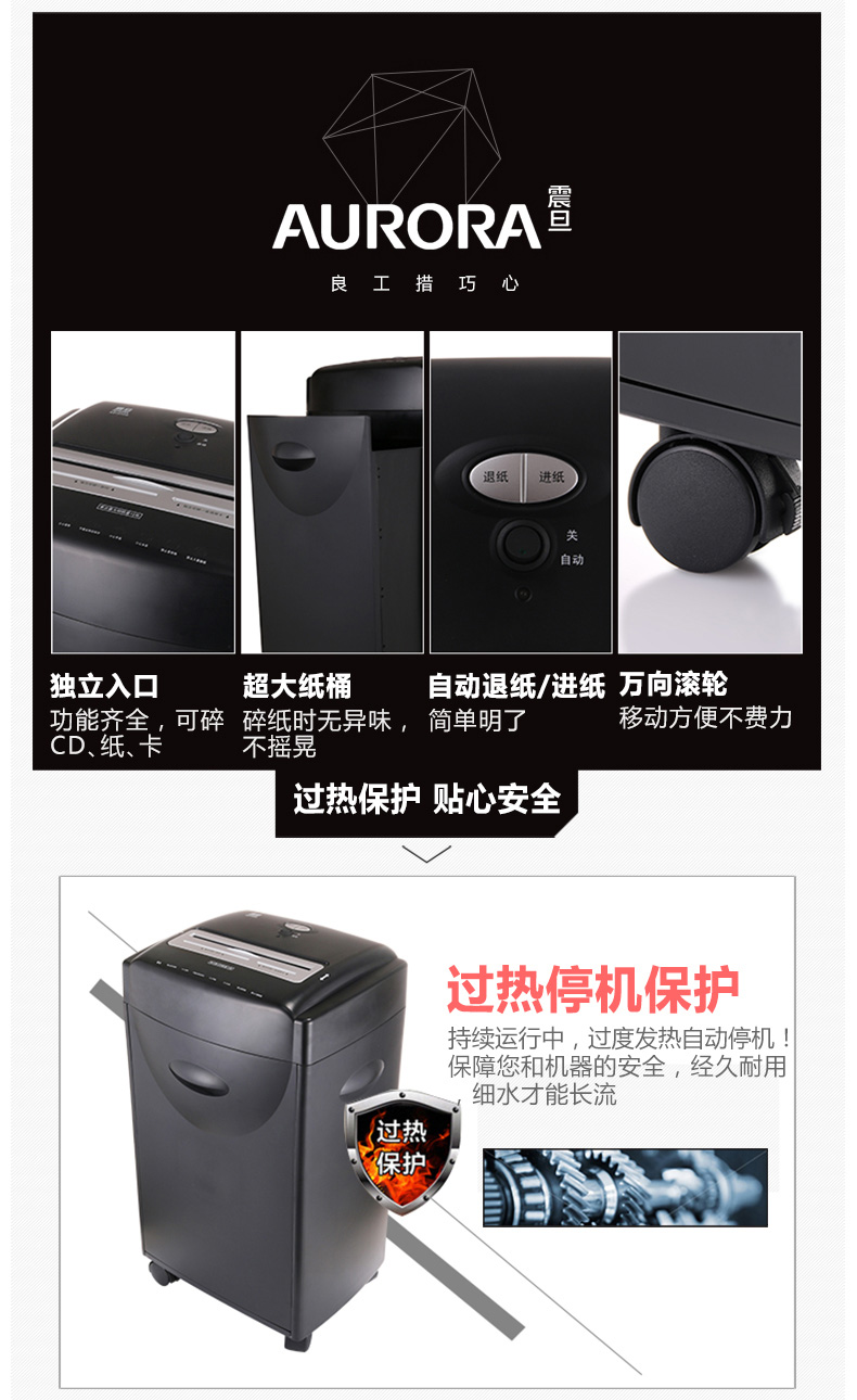 • 產(chǎn)品品牌:震旦(AURORA) AS151CD大容量專業(yè)碎紙機單次15張靜音新款