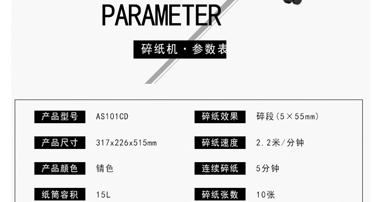 • 產品名稱:震旦(AURORA)AS101CD專業(yè)辦公碎紙機保密靜音單次10張新款