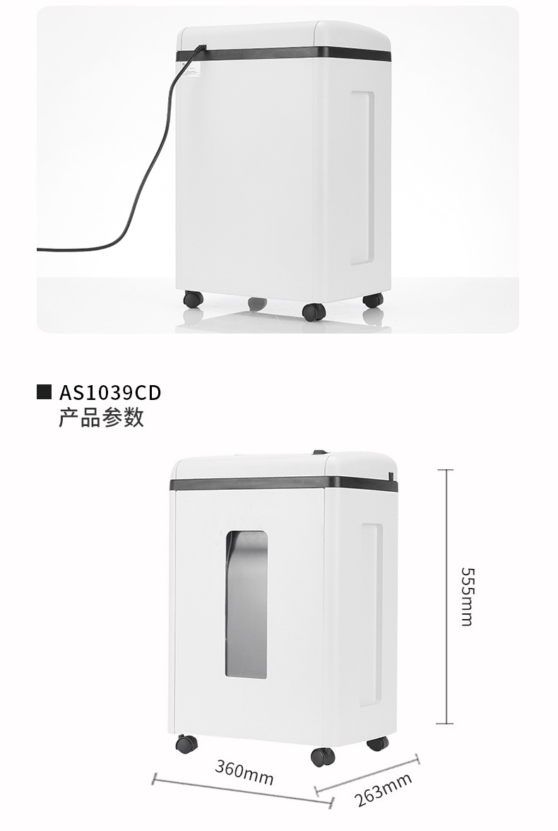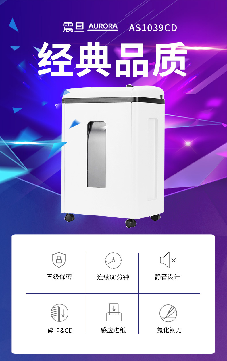 • 震旦(AURORA)AS1039CD 5級保密細(xì)碎辦公碎紙機(jī)(單次碎紙10張連續(xù)碎紙60分鐘)