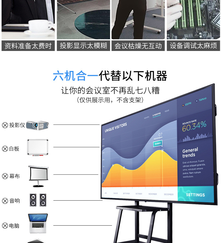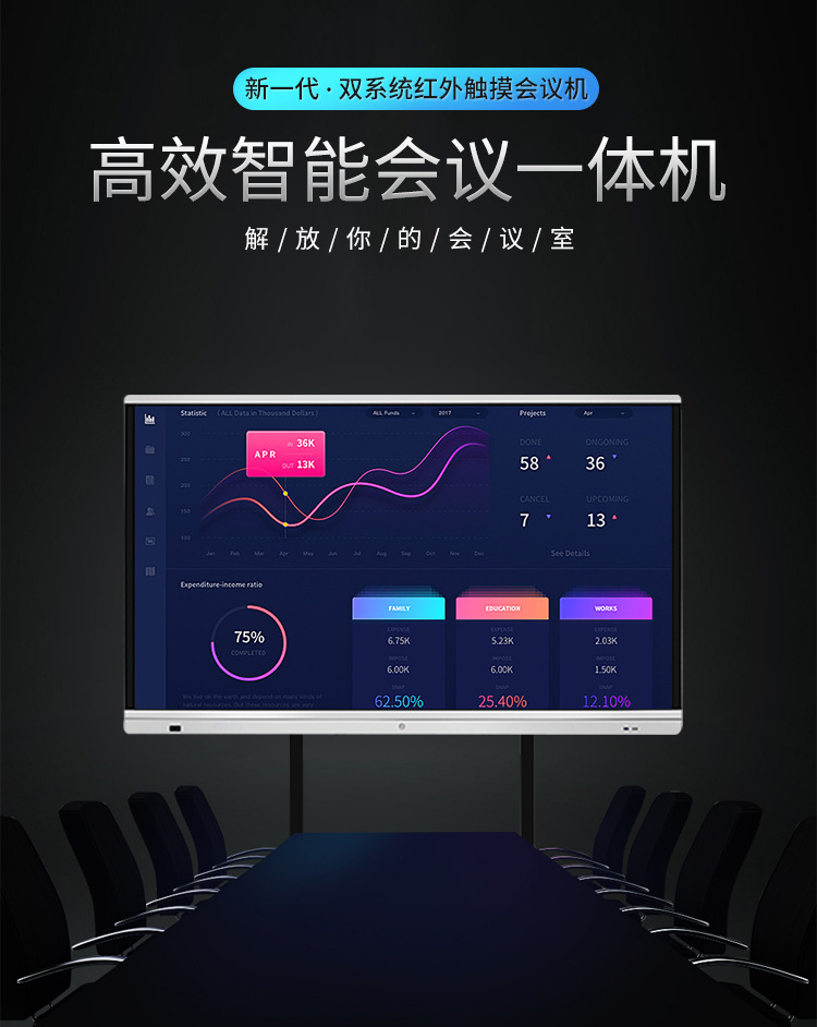 • 產(chǎn)品名稱(chēng):藍(lán)舟55/65/75/85/98寸會(huì)議觸摸一體機(jī)