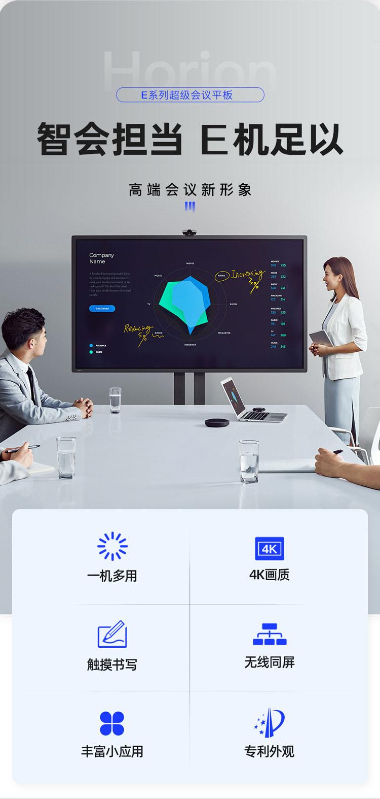 皓麗 Horion E65超級智能會議平板高性價(jià)比電子白板辦公教學(xué)投影觸摸書寫標(biāo)配含智能筆同屏器