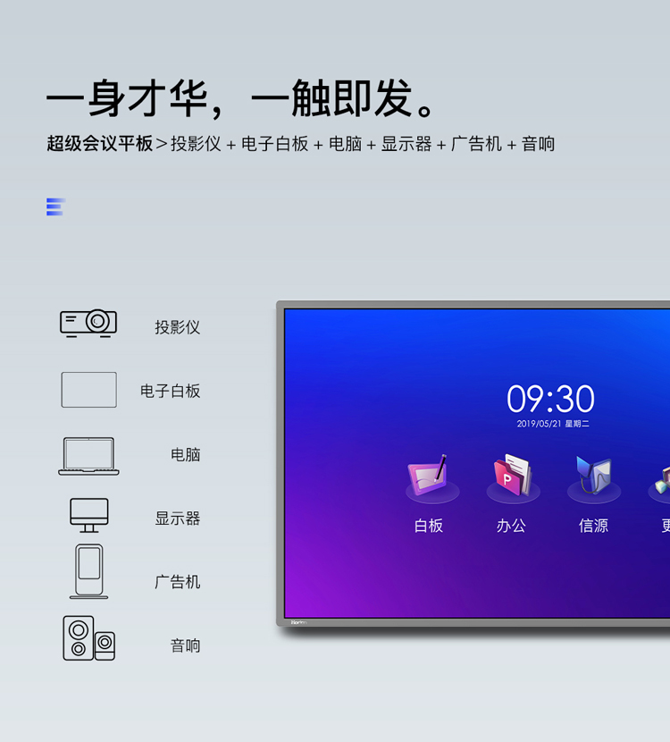 • 產(chǎn)品名稱:皓麗 Horion E65超級智能會議平板高性價(jià)比電子白板辦公教學(xué)投影觸摸書寫標(biāo)配含智能筆同屏器