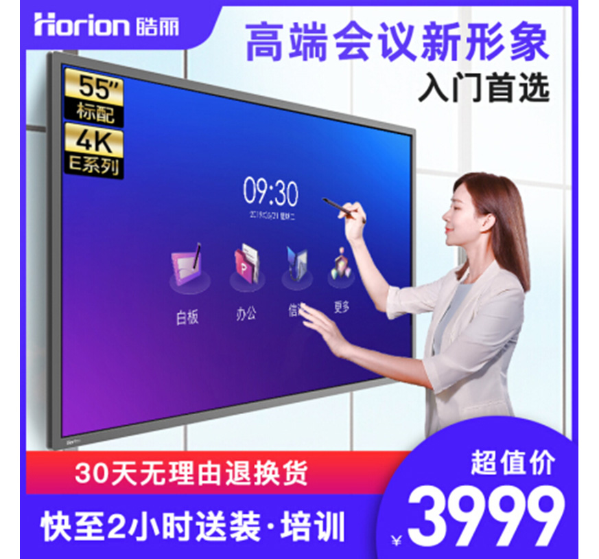 • 產(chǎn)品品牌:皓麗 Horion E55超級(jí)智能會(huì)議平板商用顯示電子白板辦公教學(xué)投影觸摸書寫標(biāo)配含智能筆同屏器+HK50支架