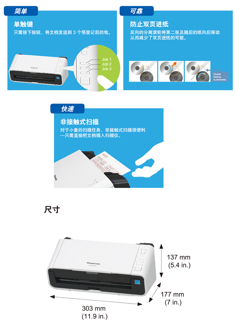 • 產(chǎn)品名稱:松下(PANASONIC)KV-S1015C 彩色文檔掃描儀