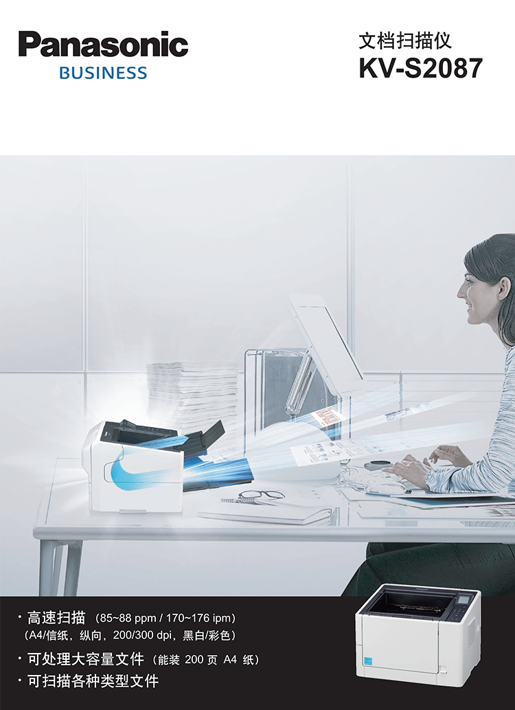 • 產品名稱:松下 KV-S2087 高速高清彩色文檔掃描儀