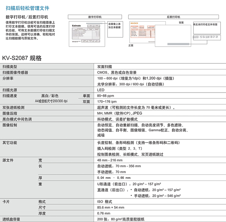• 產品品牌:松下 KV-S2087 高速高清彩色文檔掃描儀