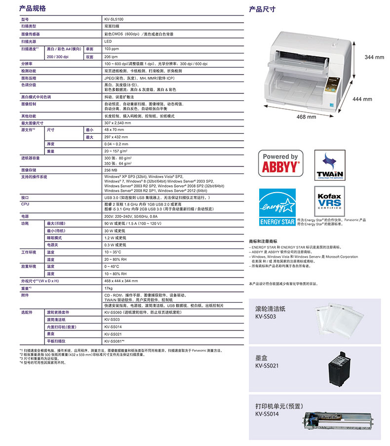 • 產(chǎn)品名稱:松下 KV-SL5100 A3彩色高速文檔掃描儀