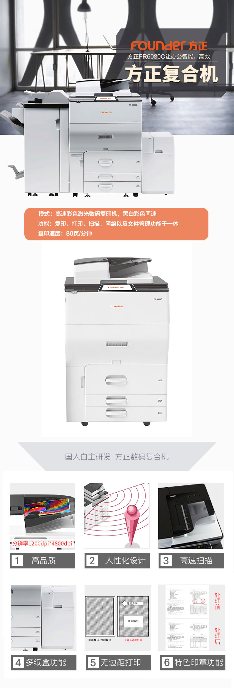 • 產(chǎn)品品牌:方正(Founder)FR6080C 多功能數(shù)碼彩色復(fù)合機(jī)