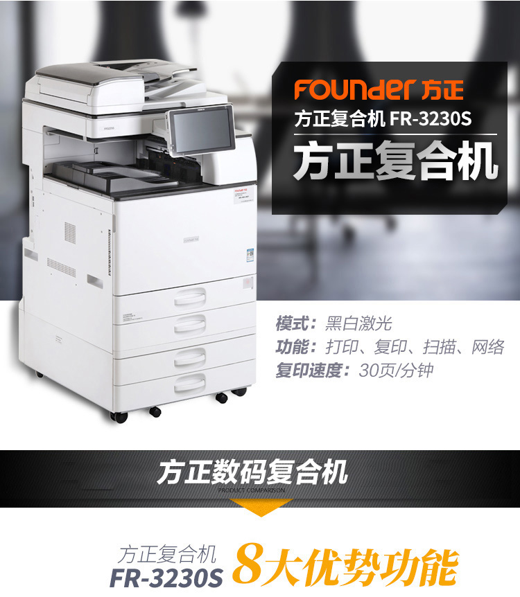 • 產(chǎn)品品牌:方正(Founder)FR3230S 多功能數(shù)碼復(fù)合機(jī)