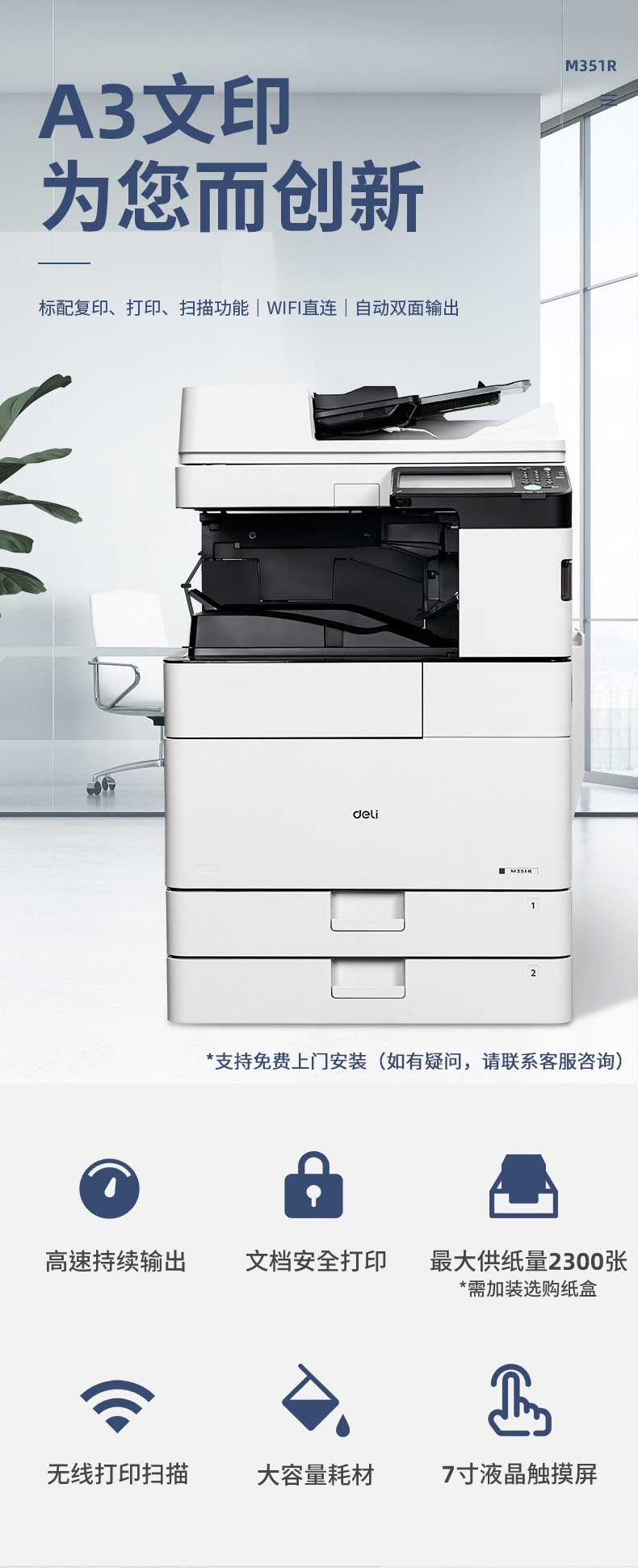 • 產(chǎn)品名稱:得力M351R A3黑白多功能數(shù)碼復合機大型商用辦公激光一體機打印機
