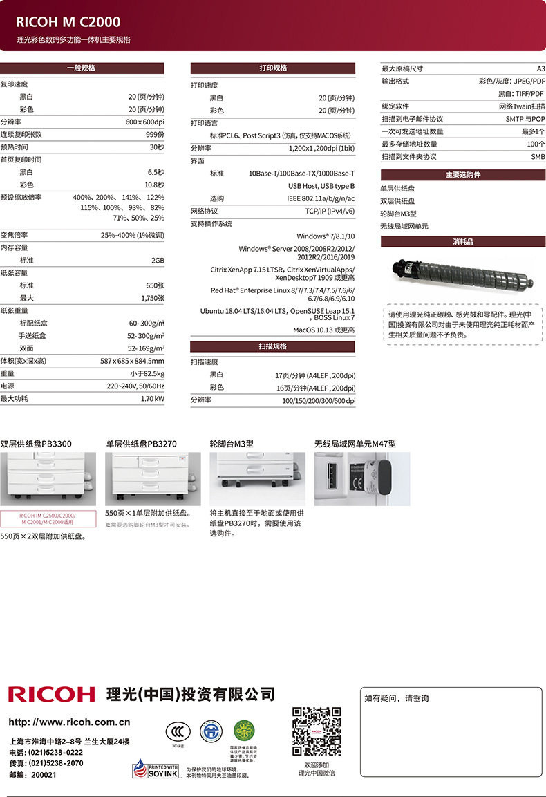 • 產(chǎn)品品牌:理光(Ricoh)M C2000 A3彩色激光復(fù)合機 主機+送稿器+單紙盒